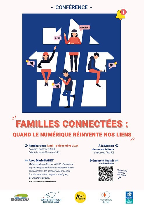 La Caisse d’Allocation Familiale des Pyrénées Atlantiques et Adoenia , la Maison des adolescents du Pays Basque , service du Centre Hospitalier de la Côte Basque, organisent dans le cadre du dispositif « « Promeneurs du Net » une conférence :