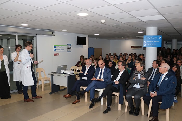 La cérémonie a débuté par la présentation de cette nouvelle structure sous toute ses composantes , offre de soins, équipements, offre de formations , recherche et innovation, locaux dédiés, etc. , notamment par le Dr Thomas Grellety, chef du service oncologie et médecin coordonnateur