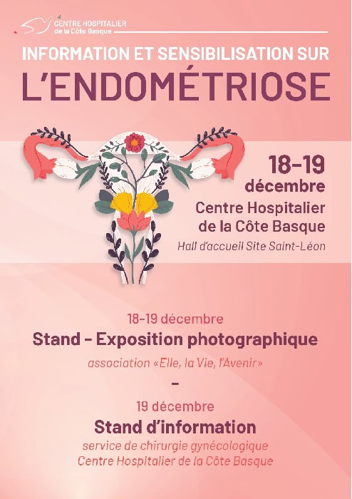 Le Centre hospitalier de la Côte Basque dans le cadre de sa labélisation en tant que Centre Pluridisciplinaire référent pour l’endométriose, propose en partenariat avec l’association « Elle , la Vie , l’Avenir une animation d’information et de sensibilisation sur l’endométriose qui se déroulera le mercredi 18 et le jeudi 19 décembre dans le hall Central de son site Saint Léon à Bayonne