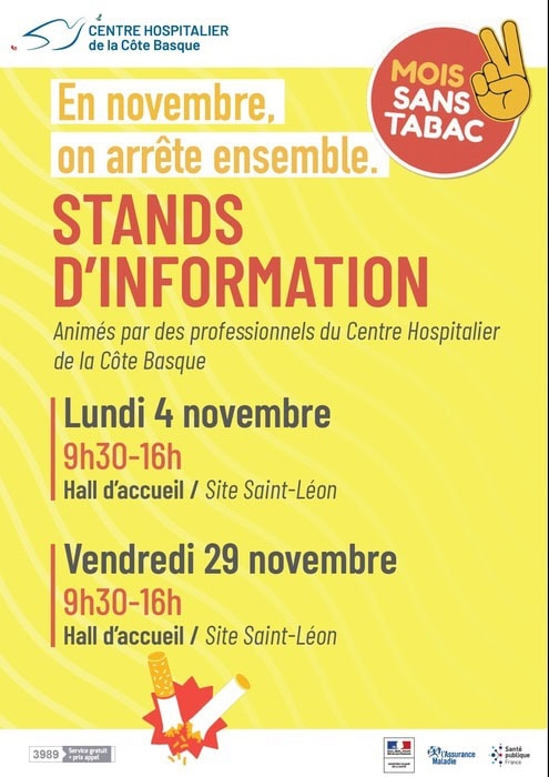 • Lundi 4 novembre 9h30-16h Centre Hospitalier de la Côte Basque.
