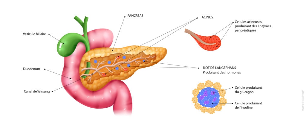 • La production d’hormones qui régulent le taux de sucre dans le sang (glycémie).