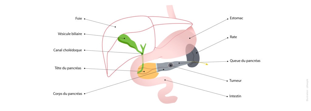 Il s’agit de l’intervention nécessaire en cas de tumeur du corps et de la queue du pancréas.