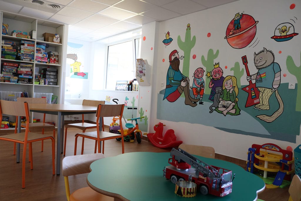 - La salle de jeux se trouve au deuxième étage du service de pédiatrie générale. Elle est ouverte en permanence, sous la responsabilité de l’éducatrice de jeunes enfants ou du personnel soignant. Vous y trouverez jeux de société, puzzles, trotteurs, dînette, ordinateur, dessin, peinture, bibliothèque…