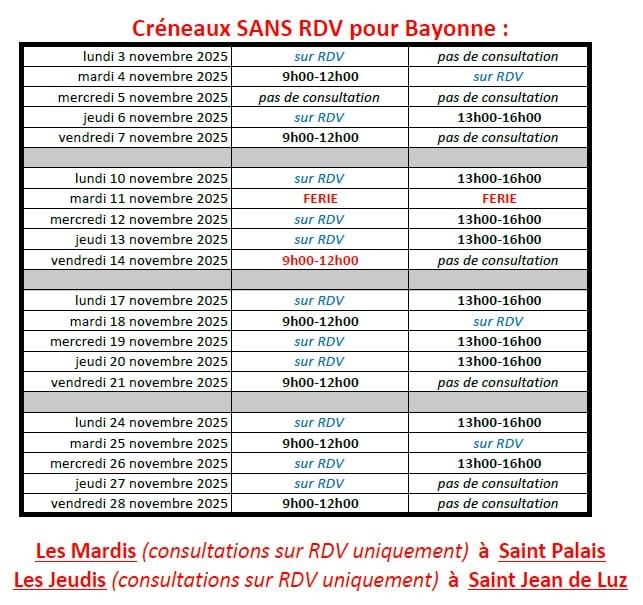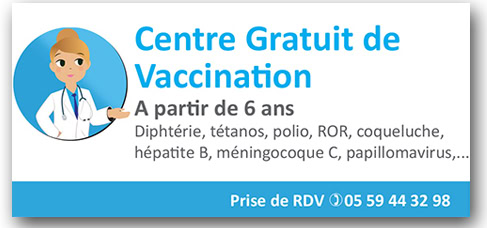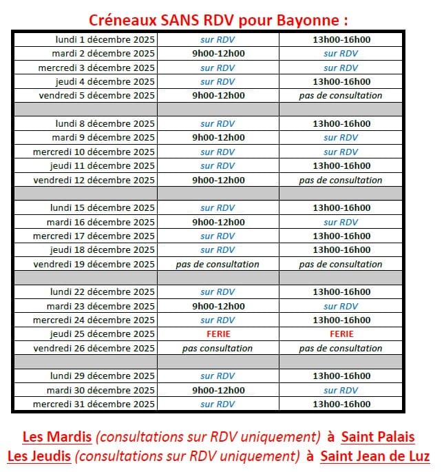 Prise de RDV par téléphone  : 05 59 44 32 98.