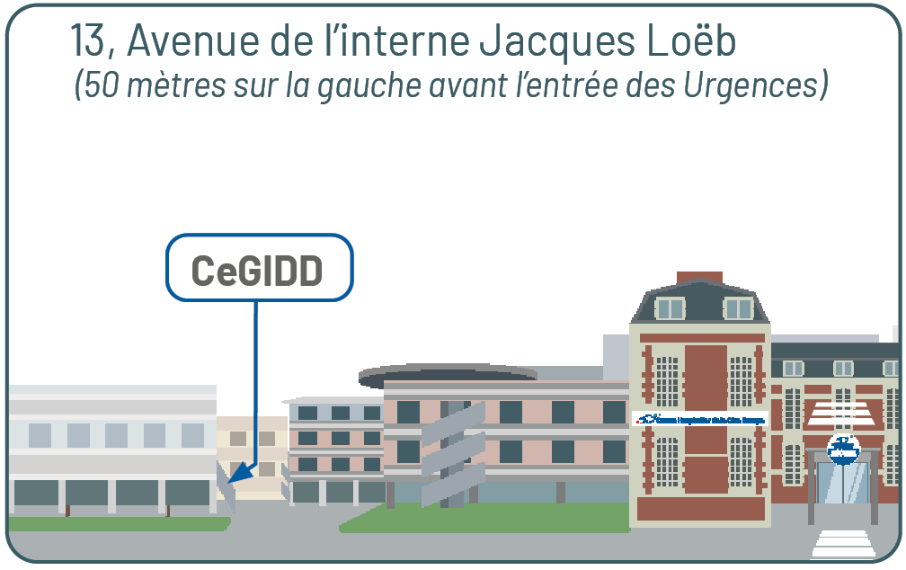 Le CEGIDD est situé 50m sur la gauche avant l’entrée des Urgences adultes, au même niveau que le Centre gratuit de vaccination et le Centre de santé sexuelle